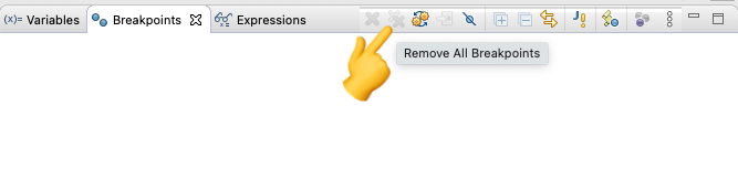 - 디버깅 모드에서 Remove All Breakpoints 를 눌러 모든 브레이크 포인트를 삭제한다.