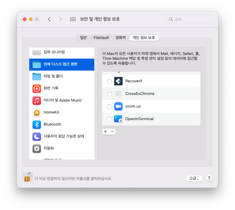 ์ ์ฒด ๋์คํฌ ์ ๊ทผ ๊ถํ์ ์ ํํ ๋ค, ์ข์ธก ํ๋จ ์๋ฌผ์ ๋ฅผ ๋๋ฌ ๊ถํ ๋ถ์ฌ๋ฅผ ์ ํํ๋ค.