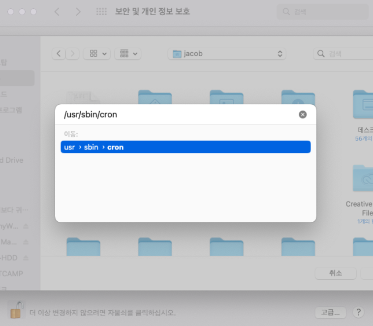 cmd + shift + G๋ฅผ ๋๋ฌ ๊ฒฝ๋ก๋ฅผ ์๋๋ก ์ด๋ํด์ฃผ์ด ํฌ๋ก ์ ์ด์ด์ค๋ค. *๊ฒฝ๋ก :/usr/sbin/cron
