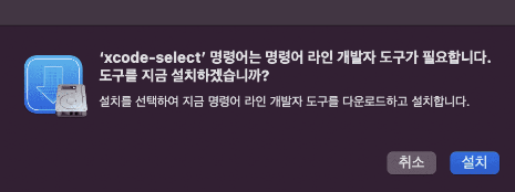 xcode-select --install- 터미널을 열고, 위의 명령어를 입력하여 CommandLineTools(command line developer tools)를 설치한다.